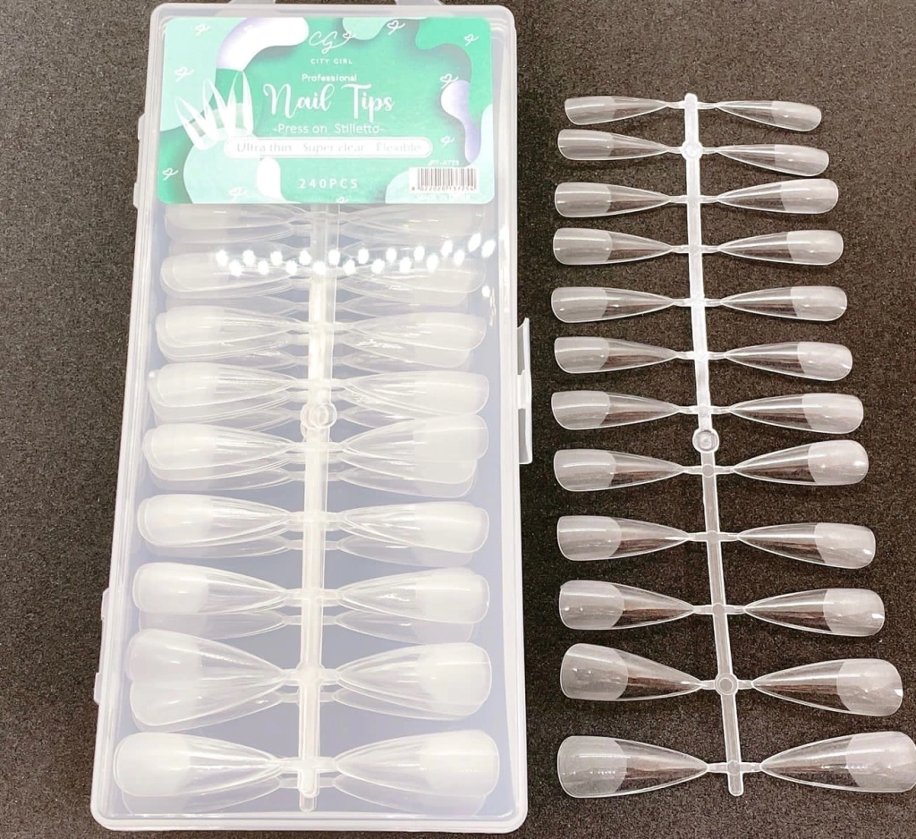 CITY GIRL - Tips soft gel x240pcs / Stiletto (pre limados) /JPT-A725 (caja verde)